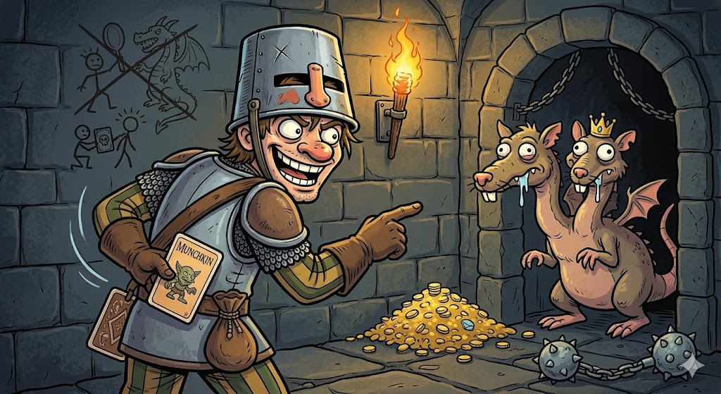 Kuolema Munchkinissa on usein strateginen nollaus. Jos sinulla on vain huonoja varusteita ja vähän kortteja, kuoleminen voi olla hyödyllistä, jotta saat uuden, tuoreen alun. Muut pelaajat kuitenkin ryöstävät ruumiisi, eli he saavat valita yhden kortin kustakin kuolleen pelaajan tavaroista. Tämä luo mielenkiintoisen dynamiikan: autatko kaveria selviytymään vai annatko hänen kuolla, jotta saat hänen upean miekkansa itsellesi?