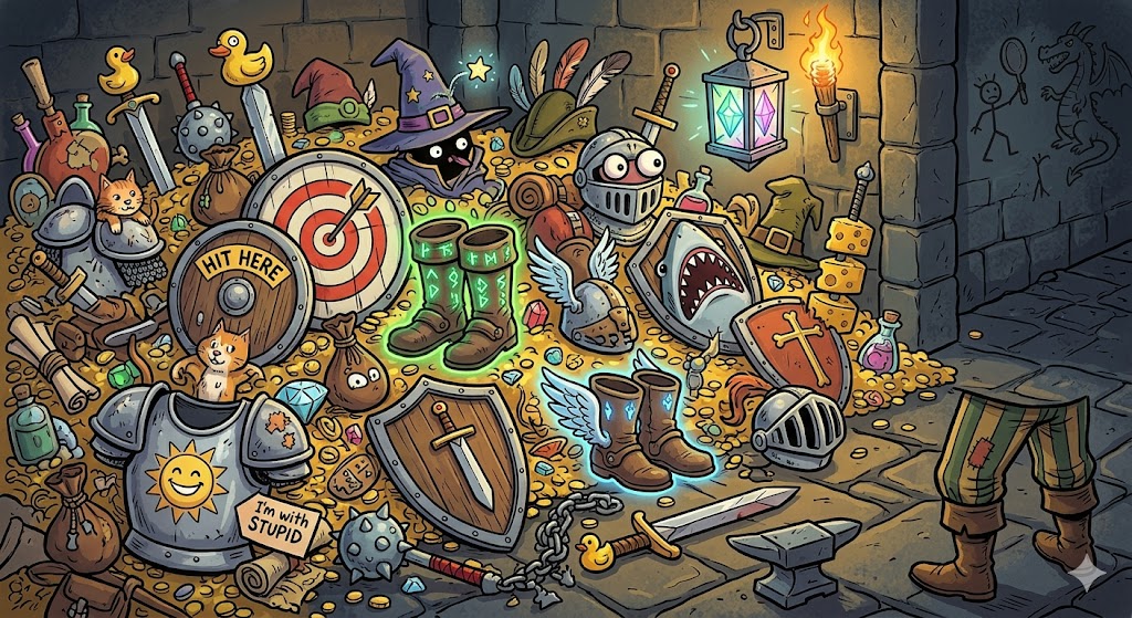 | Footgear | 1 kpl | Boots of Butt-Kicking (+2) |